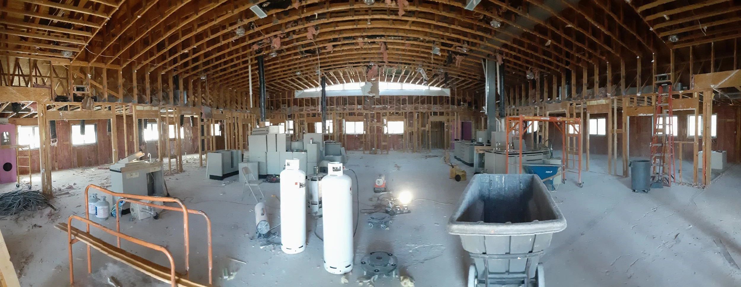 Panoranic view of worship area. Because it is panoramic, the dimensions are a little distorted, but it gives you a ssnse of what it looks like. Feb. 18, 2026